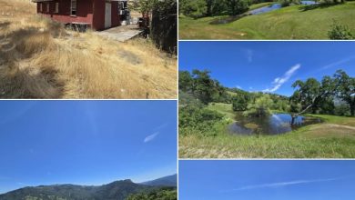 This rural property sits on forty acres outside Piercy, California, surrounded by open meadows and forested land. The setting supports…
