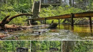 Experience a piece of Northern Michigan history with this unique 1890s custom log cabin, perfectly situated on 4 wooded acres along…
