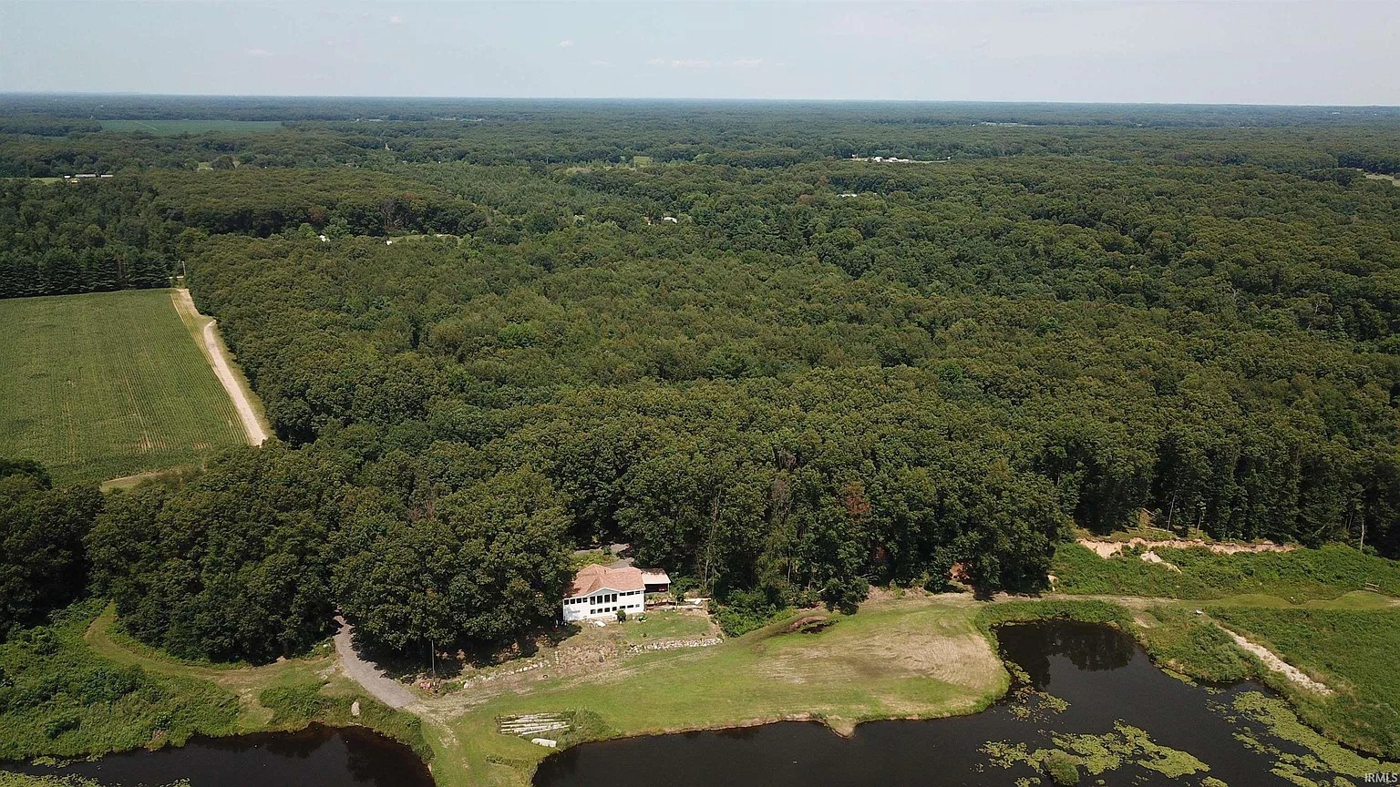This 100-acre property in Knox, Indiana, combines farmland, woodlands, and ponds in one expansive setting. Built in 1990, the 2,744-square-foot home offers two bedrooms, three bathrooms, and a walk-out basement with wide views of the surrounding landscape.