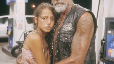 The biker overheard three men bidding on a teenage girl in the gas station bathroom at 3 AM like she…