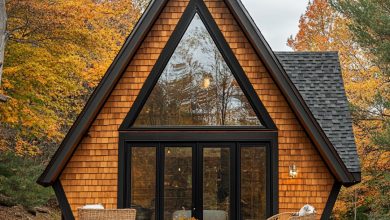 Explore this cozy A-frame chalet retreat designed for tranquility. The interior is an enchanting surprise.