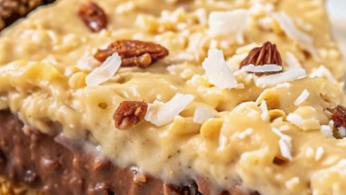 A dreamy no-bake dessert with a silky chocolate base and a rich coconut-pecan topping — perfect for any occasion. Ingredients For the Chocolate Base…