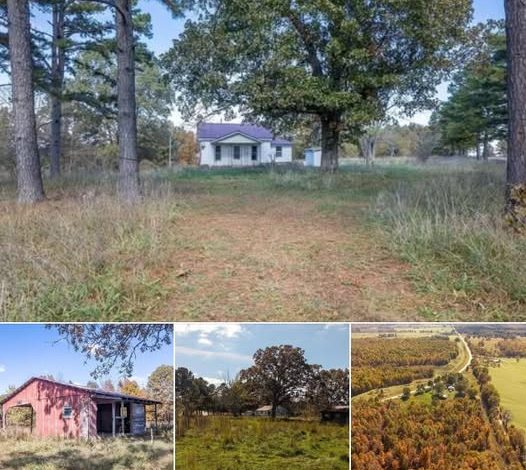 At the center of the property sits a modest farmhouse built in 1950. The home offers approximately 1,208 square feet of living space and includes two bedrooms and one bathroom. While the house will likely require renovation or updates, it provides a solid starting point for buyers interested in restoring a country home or creating a weekend retreat.