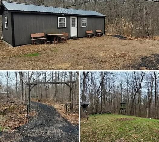 The cabin provides a cozy retreat after a day outdoors, while the additional structures enhance convenience and usability.