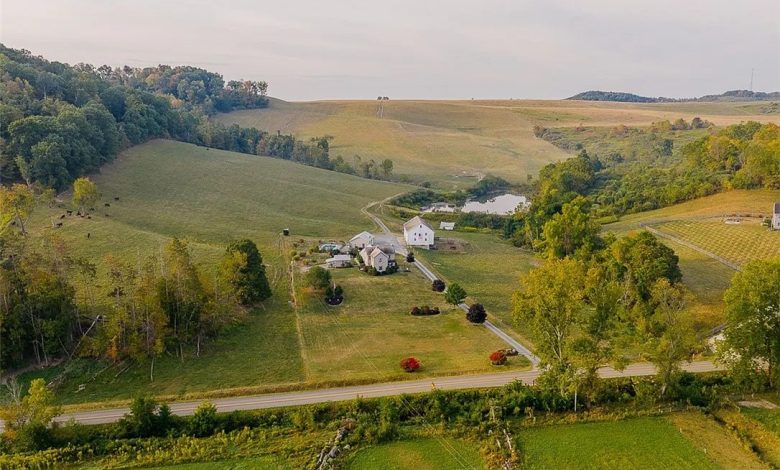 This 95-acre property in New Philadelphia, Ohio, offers space, history, and functionality. Built in 1890 and renovated in 2004, the 2,700-square-foot farmhouse includes three bedrooms and two bathrooms. The home blends traditional details with modern comfort, providing a balanced setting for country living.