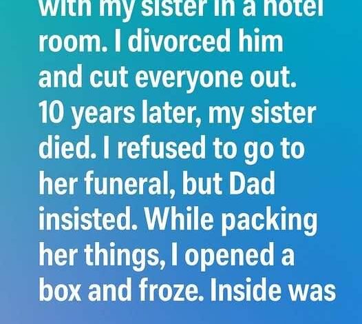 I once walked in on my husband and my sister in a hotel room. That instant shattered everything I thought I knew. I divorced him, cut off my sister, and carried the silence for ten long years. When she passed away, I refused to attend her funeral—until my father insisted I go.
