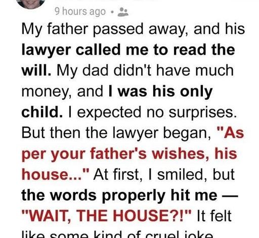 “My father passed,” I told the lawyer. My voice felt steady, practiced. We had never been wealthy, and I was his only child. I expected a simple meeting — a few papers, maybe a small bank account, nothing more.