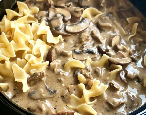 Slow Cooker 5-Ingredient Beef Stroganoff Pasta