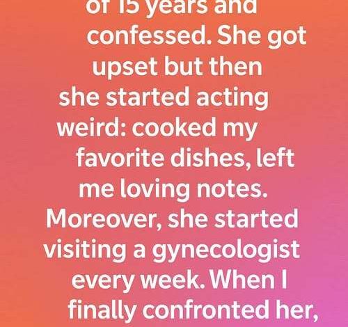 Then she started going to “doctor’s appointments” — always her gynecologist, always twice a week. I told myself not to pry, not after what I’d done. But my mind wouldn’t rest. Was she sick? Or… was she seeing someone else?