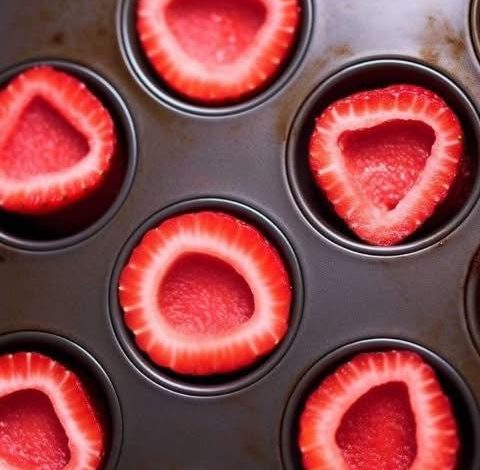 Arrange hollowed strawberries in mini-muffin tin. The mouthwatering filling that goes inside is a must-see