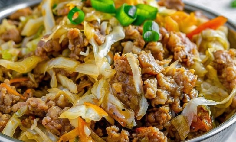 • Allow the entire mixture to cook gently and steam until the shredded cabbage has reached a soft and tender texture.