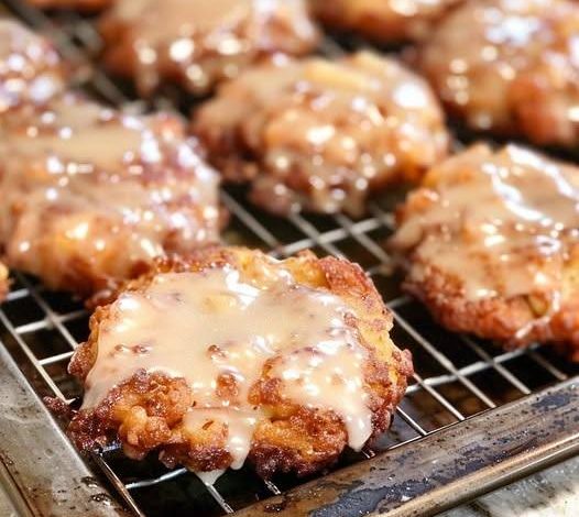 - Glaze the fritters: Once the fritters have cooled slightly, drizzle the glaze over the tops using a spoon.