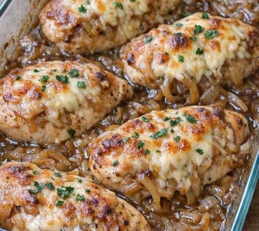 This dish is pure cozy comfort: tender chicken baked in a rich, oniony sauce and topped with melty  cheese. It captures all the flavor of classic French onion soup but keeps things simple with just a few ingredients. Perfect for busy weeknights, it feels special without any extra effort—just slide it into the oven and let the aroma bring everyone to the table.