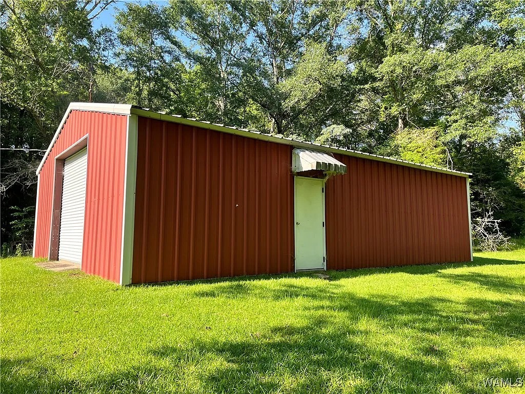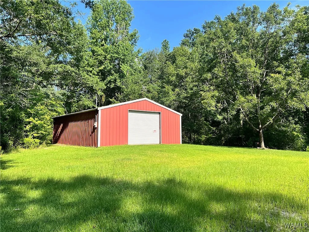 A metal building sits toward the back of the property and supports daily utility. The structure includes two roll-up doors, full insulation, and a solid concrete foundation. Power connects directly, which supports tools, storage, or workshop projects. Meanwhile, the size allows creative reuse beyond storage. Some owners may convert the building into a compact barndominium. That approach supports minimal living while preserving land for future plans.