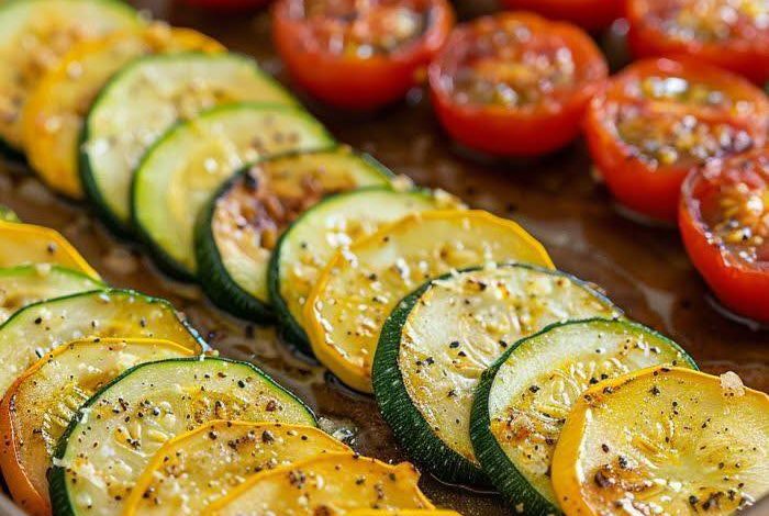 This Roasted Garlic Parmesan Zucchini, Squash, and Tomatoes is a delicious and easy-to-make side dish. The vegetables are tossed in olive oil, garlic, and seasonings, then roasted to a tender, golden finish and topped with savory Parmesan cheese.