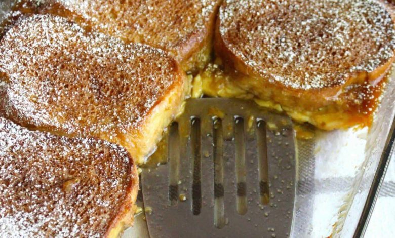 5. Serve: Dust the top generously with powdered sugar before serving. Enjoy the warm, sweet, and decadent French toast bake!