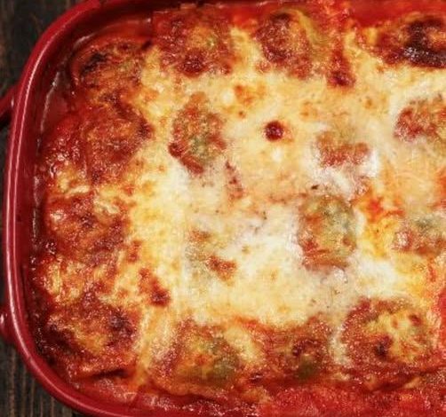 This speedy  casserole captures all the classic flavors of lasagna by using frozen ravioli layered with  marinara sauce and plenty of melty  cheese.