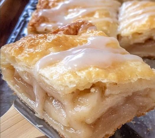 These Chicago-Style Bakery Apple Slices are a nostalgic Windy City classic. Instead of a traditional deep-dish pie, they’re baked in a large, flat “jelly roll” pan, creating a portable, rectangular dessert with a flaky, buttery crust and a sweet vanilla glaze. A key detail that gives them their signature bakery-style texture is the grated butter method, which forms tiny layers throughout the dough so it stays crisp even beneath the apple filling.