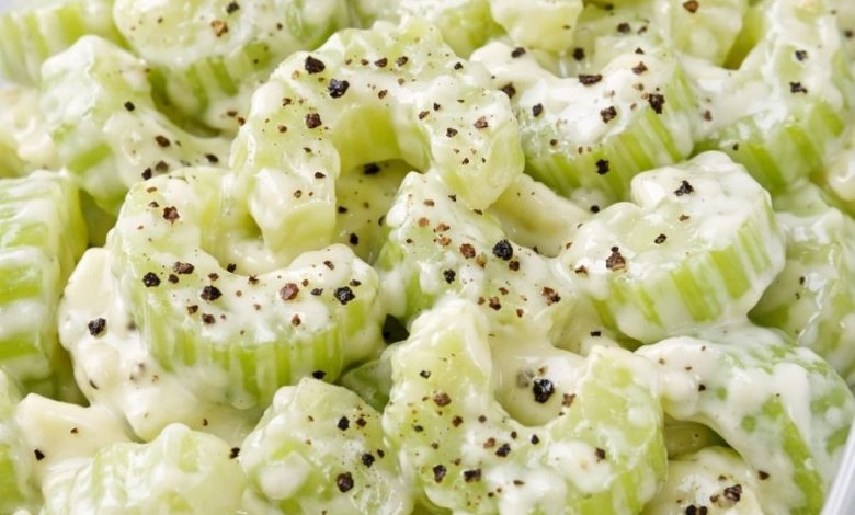Cool, crunchy celery coated in a light, tangy dressing with a hint of sweetness—it’s the perfect counterpoint to rich mains like fried chicken, meatloaf, or baked ham.