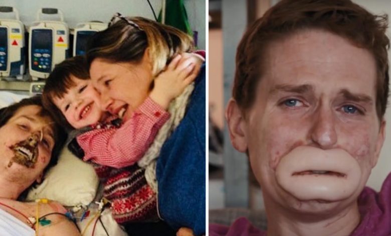 His face was pretty much unrecognizable after surgery. His son Sam was too scared to come near him.