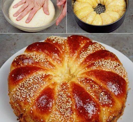 This recipe creates an airy, tender brioche enriched with milk and butter, using a distinctive technique that adds an extra swipe of butter and a sprinkle of sesame seeds for added flavor.
