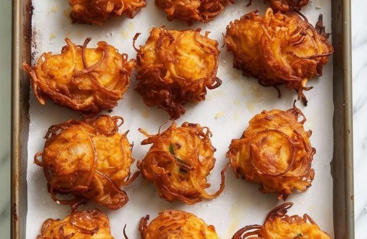 3. Fry the Fritters: Heat vegetable oil in a skillet over medium heat until it reaches 365°F. Carefully spoon the onion batter into the hot oil, forming small fritters. Fry each side until golden brown, typically 2-3 minutes per side. Be sure to fry in batches to avoid overcrowding the skillet.