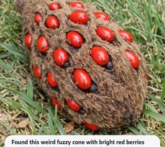 Finding unusual objects in your garden can spark both curiosity and surprise. One discovery that often leaves people puzzled is a strange, fuzzy cone with bright red seeds sticking out of it. At first glance, it might resemble something from a science-fiction movie or a strange natural ornament. In reality, this interesting object is simply part of a plant’s natural life cycle.