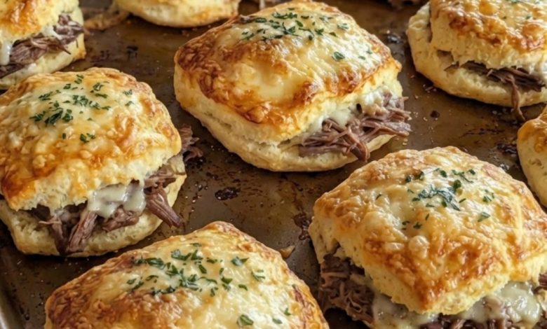 These French Dip Biscuits reimagine the classic beef sandwich as a warm, flaky biscuit layered with tender roast beef and melted provolone—served with a side of rich au jus for dipping. Think of them as mini French dip sliders meets Southern comfort, perfect for weeknight dinners, game day, or impressing guests with minimal effort.