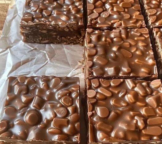 - Pour the chocolate/peanut butter mixture over the crispy rice cereal and mix until combined. Pour into the lined baking dish and refrigerate until firm (at least an hour).