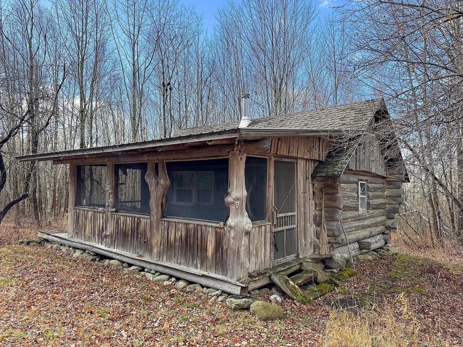The log cabin began construction in 1994 and currently functions as a one-room space. Owners enjoy flexible use without complicated systems. A privy supports daily needs, while power access runs along the road. Therefore, buyers may plan gradual upgrades if desired. The interior layout allows reconfiguration for a bathroom or divided living areas. Because the structure keeps a modest footprint, maintenance stays manageable. This approach fits buyers seeking function over form.