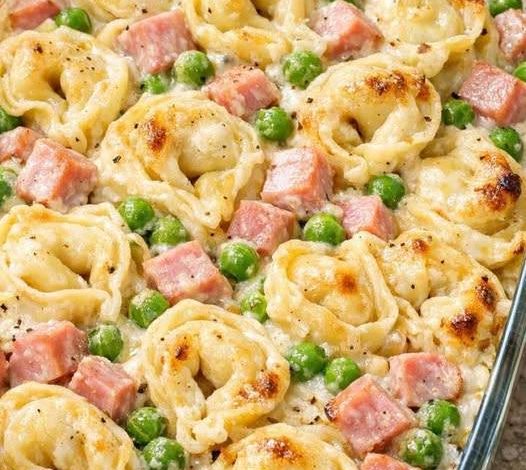 Oven-Baked 4-Ingredient Ham and Pea Tortellini