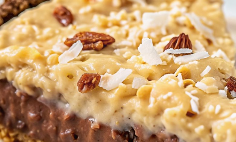 A dreamy no-bake dessert with a silky chocolate base and a rich coconut-pecan topping — perfect for any occasion.
