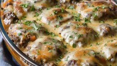 This Amish Hamburger Steak Bake includes seasoned ground-beef patties covered in a rich, creamy sauce made with cream of mushroom…