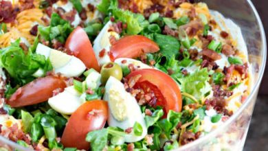 Course: Salad Cuisine: American Keyword: chicken-bacon-ranch-layer-salad Servings: 12 servings Author: Melissa Sperka Ingredients 9 cups roughly chopped green leaf or romaine lettuce divided 1 large red bell pepper seeded and diced…