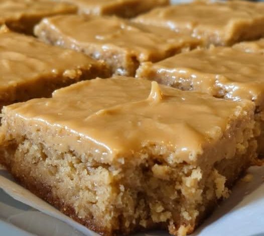 - For the frosting: In a saucepan, bring 1 stick of butter and ½ cup of peanut butter to a boil. Stir in 2 tablespoons of milk and gradually mix in the powdered sugar until smooth. Pour the frosting over the cooled cake, spreading it evenly, and let it cool and set before serving.