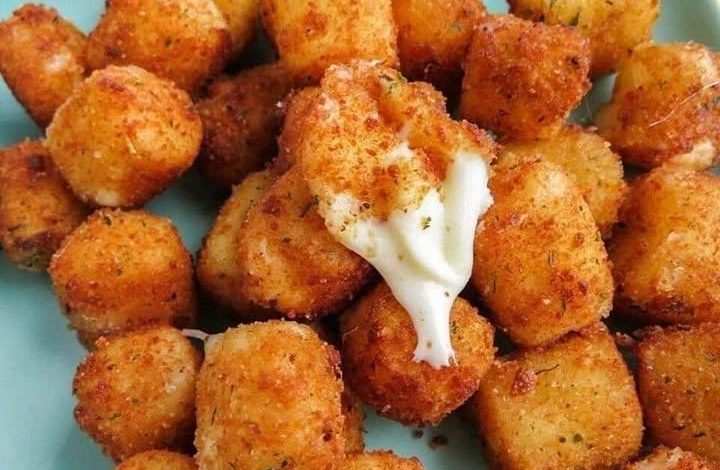 4. Carefully add 5–7 cheese bites to the hot oil, keeping them separated. Fry for about 30 seconds, or until golden brown.