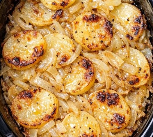 With just four basic ingredients, this dish transforms into something rich, tender, and deeply flavorful. As it slowly cooks, the potatoes soften, the onions melt into sweetness, and the butter ties everything together into a warm, satisfying side that truly feels like a hug from the past.