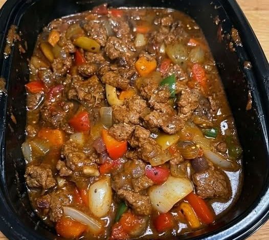 Tender strips of sirloin steak, onions, and bell peppers are slow-cooked in a savory sauce for a classic, flavorful one-pot meal.