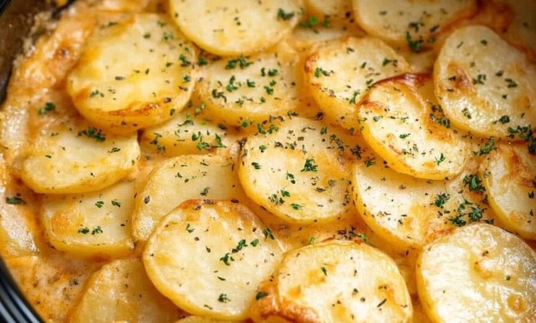 These Slow Cooker Scalloped Potatoes deliver a creamy, savory, and cheesy side dish with minimal effort. Thinly sliced potatoes are cooked in a rich, seasoned cream sauce until they are fork-tender.