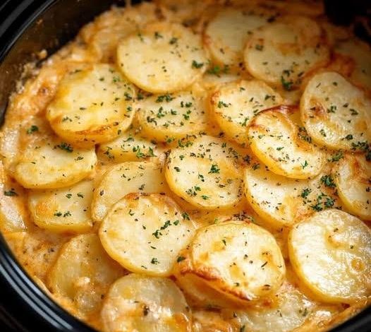 These Slow Cooker Scalloped Potatoes deliver a creamy, savory, and cheesy side dish with minimal effort. Thinly sliced potatoes are cooked in a rich, seasoned cream sauce until they are fork-tender.