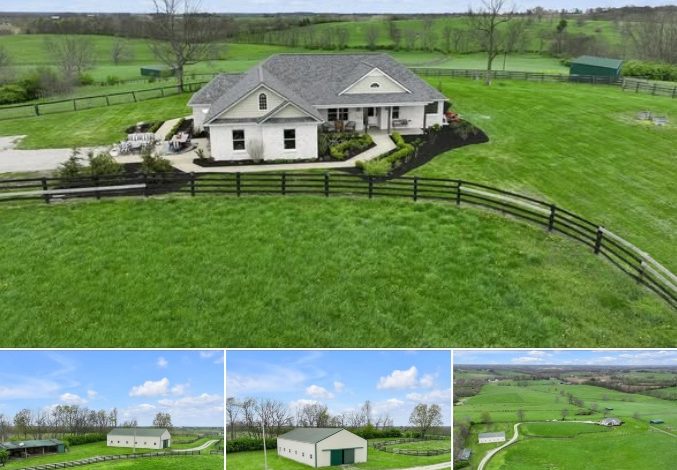 Nestled in the heart of Bourbon County, right in the center of Kentucky’s renowned horse country, this expansive ranch-style home offers an unparalleled blend of comfort, functionality, and equestrian appeal. Built in 2009, the property features 3 bedrooms, 3 bathrooms, and 2,437 square feet of thoughtfully designed living space, all set on 50 acres of rolling pastures, paddocks, and open land.