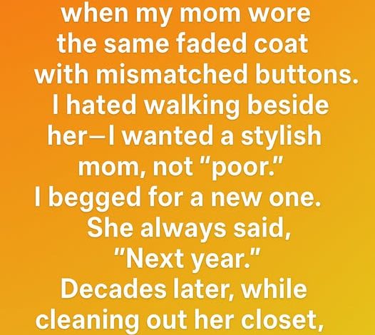 As a teenager, I used to roll my eyes every winter when my mom pulled out her same old coat. It was faded from years of wear, and some of the buttons didn’t even match anymore. I hated walking beside her in public. I wanted a stylish mom, one who looked like the other mothers—polished, confident, not “poor.” I remember begging her more than once to buy a new one. Every time, she would smile gently and say, “Next year, sweetheart.”