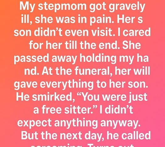 I didn’t expect anything anyway. But the next day, he called screaming. Turns out…He had discovered a letter tucked inside one of the old boxes his mother left behind. It wasn’t addressed to him—it was addressed to me. In it, she thanked me for caring for her with patience and kindness when she felt most vulnerable. She wrote that while she couldn’t change her will without causing family conflict, she hoped her words would remind me that what I gave her mattered more than anything she could give in return. She said I had been her comfort, her steady hand, and her peace in her final days.
