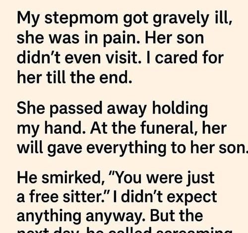 In the letter, she had written gently. She thanked me for the small things I had done during the final months of her illness—sitting with her when the house felt too quiet, listening when the pain made her restless, speaking calmly when she felt afraid.