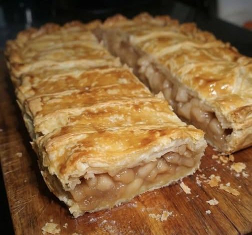 This apple strudel is a generous, slab-style dessert that’s reminiscent of a classic “jelly roll” strudel. Unlike the ultra-thin phyllo versions, this crust is tender and flaky, thanks to the shortening and egg yolks. The secret to that nostalgic, bakery-style finish? Pouring the glaze over the strudel while it’s still hot, allowing it to sink in just enough to keep the pastry moist and flavorful.