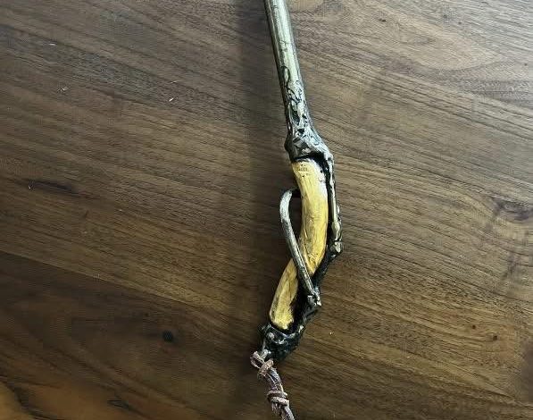 I had a similar experience in the recent past, but this time as an adult, when I encountered a mysterious artifact in my own yard. At first sight, it looked like a kind of fancy grip, about 14 inches in length and weighing around 0.8 pounds. 5 pounds, and is made up of metal, wood (or possibly plaster), and a leather strap. It resembled a scene from a Victorian novel that wanted to share its tale.