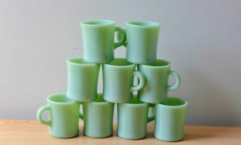 Why did they become popular? As Martha Stewart’s website explains, the glass itself was resistant to heat and stains – which definitely explains some of its popularity with consumers – though the pretty jade hue also was a popular draw. But really, as kitchenware, it was simply very inexpensive but also very durable – a definite plus during WWII and the Great Depression when money was tight.