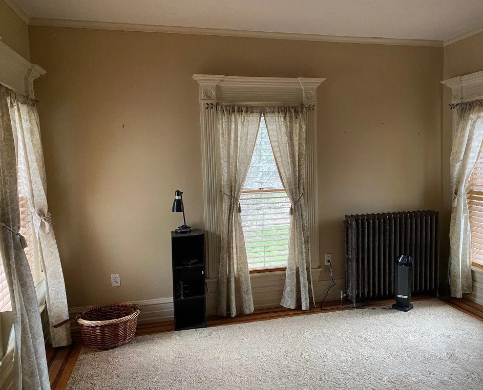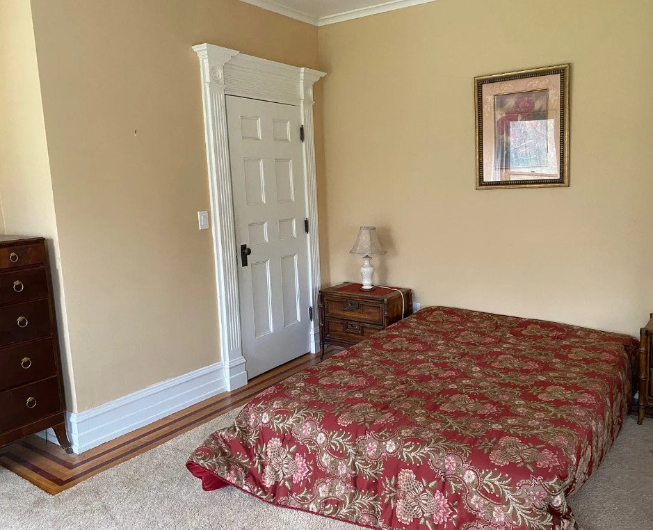 With seven bedrooms and five bathrooms, the home is both spacious and accommodating. Two bedrooms are conveniently located on the main floor—ideal for guests or multi-generational living—while five additional bedrooms occupy the second story. Each bedroom retains its own personality, enhanced by the light filtering through tall windows and the views of stately trees that surround the estate. The bathrooms, while updated over time, maintain a sense of vintage charm that complements the home’s historic character.